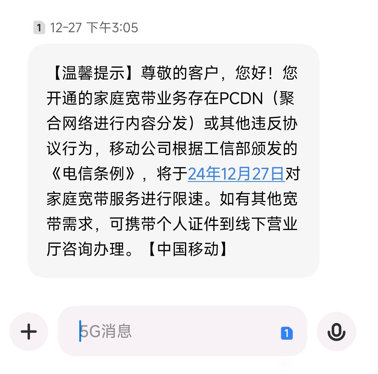 有的人收到了来自运营商的短信,通知用户对上行进行限速。有的人睡醒起来一看,自己家的公网ip变成内网地址了。还有更倒霉的,直接被局方停机,只能直接销户。