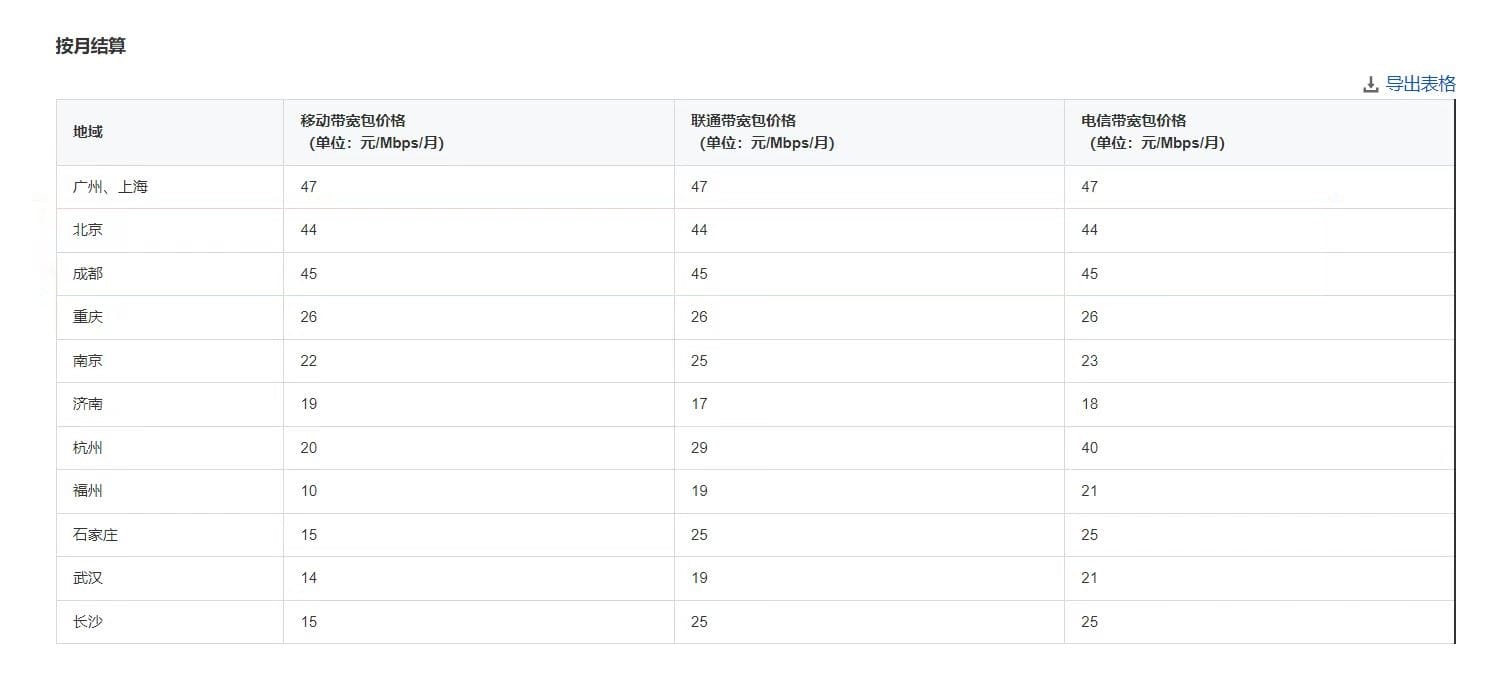 刚刚我们是从每GB的流量单价来进行的对比,现在让我们从带宽单价来看一下。