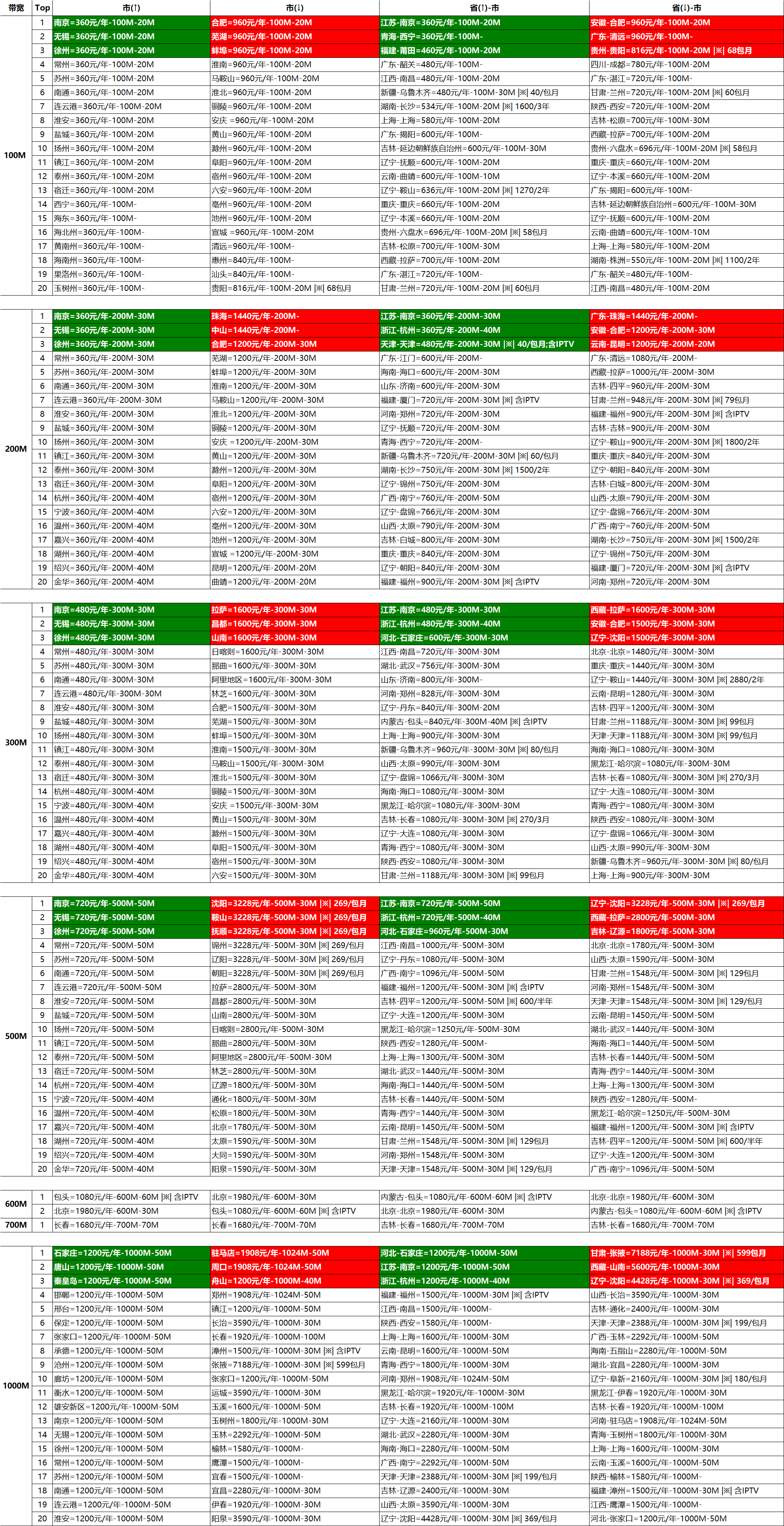 我们以联通网络为例,企业价格最低的是济南联通,单价为17元/Mbps/月。考虑到批量购买会有折扣,我们不妨按照一半计算,也就是8元/Mbps/月。这个价格基本是国内的底价。(移动的网络价格可以更低,能到5元/Mbps/月。)
